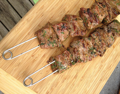 | #2027 Double Prong Stainless Kebab Skewers An ideal kebab skewer for grilling meat as the double prong makes it easy to flip without any concern that the food will rotate with the skewer. Each skewer is formed and bent from a single piece of stainless steel for a simple and sophisticated design. A strong but thin steel gauge was specifically chosen to pierce small holes that help keep the meat juicy. Solid in 4 units per retail package. 15" overall length. 15" overall length each set UPC 0-29794-20279-7 case pack 12 sets |
